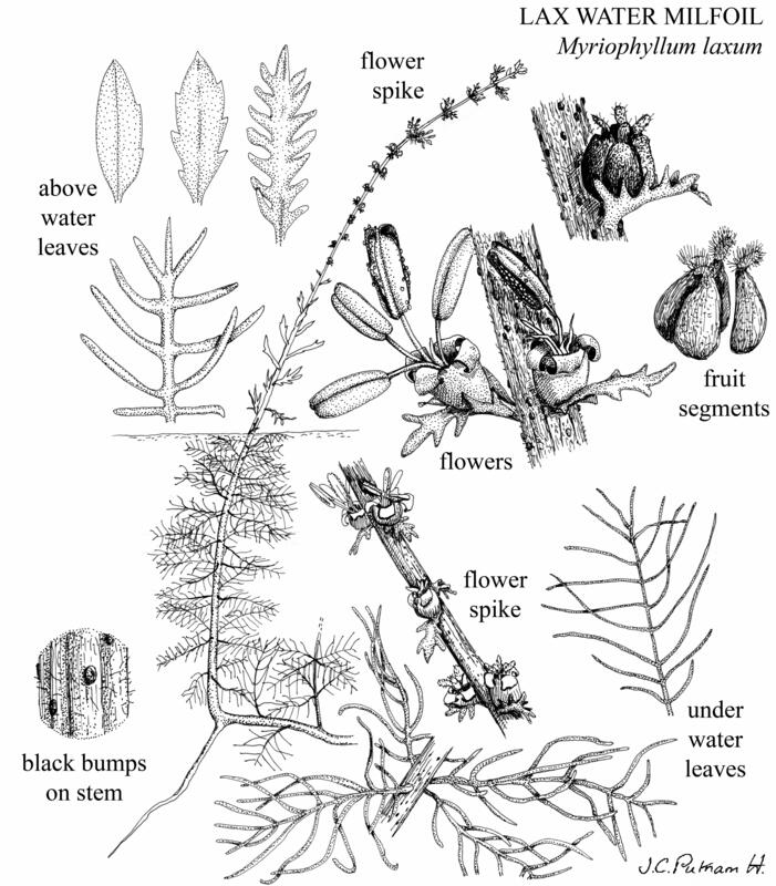 Aiken, S.G. 1981. Conspectus of Myriophyllum (Haloragaceae) in North America. Brittonia 33(1): 57-69. https://link.springer.com/article/10.2307/2806578