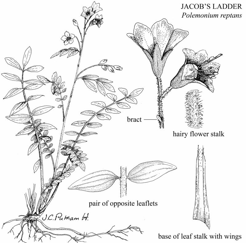 Hilty, J. 2018. Jacob's Ladder, Polemonium reptans, Phlox family (Polemoniaceae). Illinois Wildflowers. https://www.illinoiswildflowers.info/woodland/plants/jacob_ladder.htm