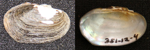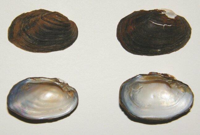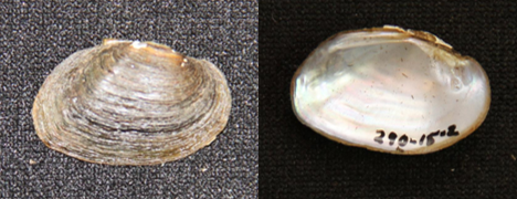 Shell is small, typically less than 35 mm (1⅜ inches) in length. Valves somewhat thick and inflated. Anterior margin rounded, ventral margin straight to convex in females. Posterior margin typically broadly pointed in males while more truncated or broadly rounded in mature females. Umbos typically elevate to the hingeline or slightly above. Periostracum usually satiny and black or brown. Left valve with two triangular pseudocardinal teeth and short straight lateral teeth. Right valve with one triangular pseudocardinal tooth and one lateral tooth. Umbo pocket shallow. Nacre variable, ranging from bluish-white to pink, purple, or iridescent.