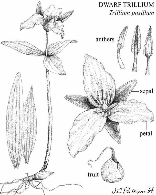 Kral, R. 1983. Trillium pusillum species account. A report on some rare, threatened, or endangered forest-related vascular plants of the South. Technical Publication R8-TP2. United States Forest Service, Atlanta.